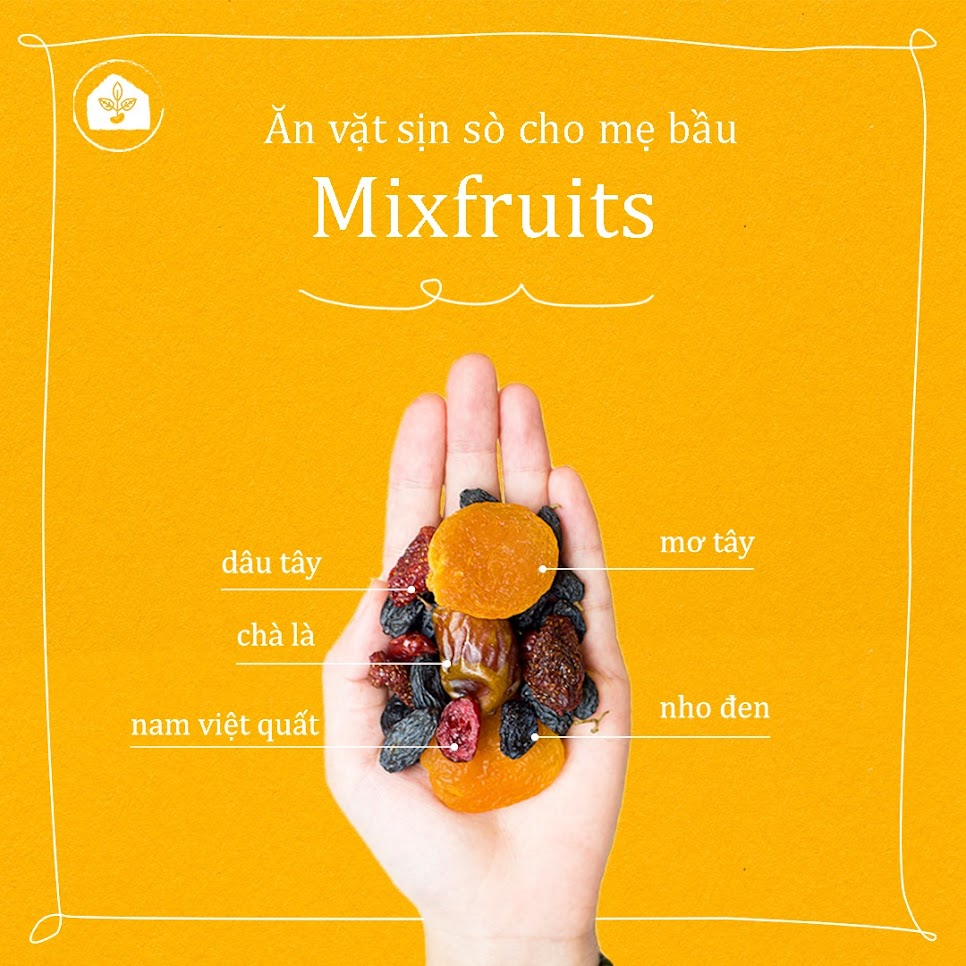 Mixnuts và Mixfruits là Combo ăn vặt an toàn mà Mẹ Bầu có thể yên tâm lựa chọn trong suốt thời gian thai kỳ. Hương vị tươi ngon với độ ngọt vừa phải chắc chắn sẽ khiến Mẹ ăn hoài không ngán. Mỗi lần sử dụng Mẹ lấy khoảng 30-40gr, ước chừng bằng nắm tay.Không chỉ dùng để ăn trực tiếp vào bữa sáng hoặc thay thế các bữa phụ, Mẹ cũng có thể kết hợp hạt và quả sấy khô để biến tấu thành nhiều món ăn đa dạng. Hãy xem qua Sổ tay ăn vặt được tặng kèm khi mua Combo Mixnuts và Mixfruits của Nhà Đậu để biết thêm nhiều thông tin hữu ích và những cách chế biến hấp dẫn khác nhé.